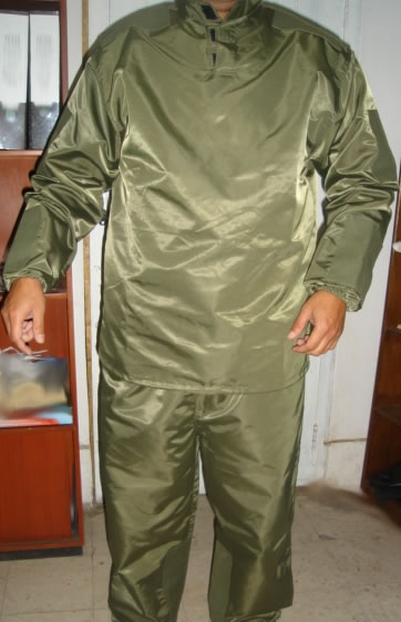 En la confección de ropa impermeable se utiliza telas como tejido de algodón laminado por ambos lados con PVC o en la tela que el cliente requiera.
